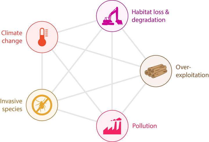 The earth has an enormous variability in the life forms at various scales of ecological complexity. More people than ever are appreciating the essential goods and services derived from biodiversity. Unfortunately, the growing human population and their demands have risked the sustainability of this biodiversity. The loss and degradation of habitats, excessive exploitation of resources, pollution, the introduction of invasive species, and the effects of climate change are the primary drivers of biodiversity decline. All these threats are associated with directly or indirectly humans. This chapter focuses on the key threats to biodiversity within the Indian Siwalik ecosystem.